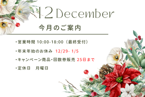 ※年末は予約が混み合いやすいため、ご希望の方はお早めにご連絡ください。